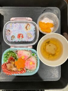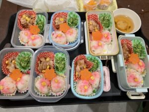 調理の先生がみんなのお弁当箱に詰めてくれました🤗