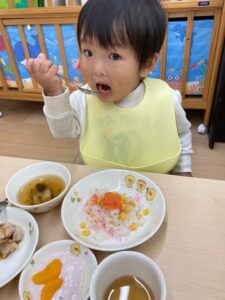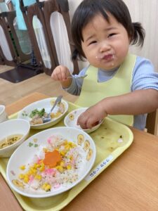 可愛いご飯にわくわく🌸美味しいね😄🥄💨