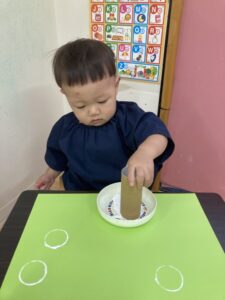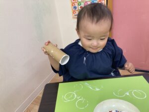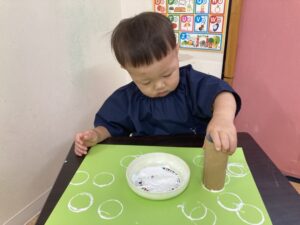 トイレットペーパーの芯を絵の具に付けて~