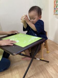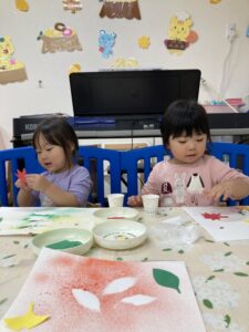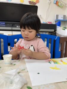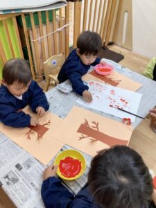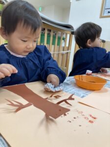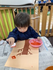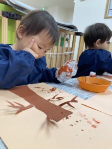 よしっ!!もっともっと絵の具を付けてペタペタしてみよう✨