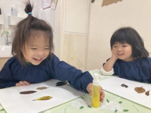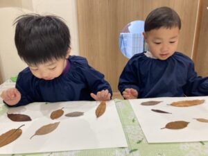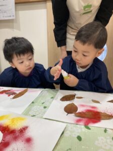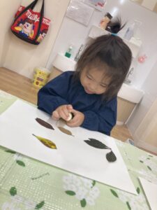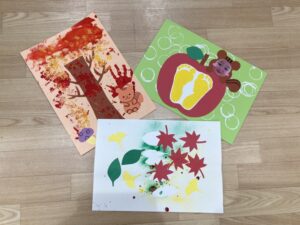 最後に、先生が作ってくれた葉っぱや紅葉をのりで貼って、、完成~🍁🍃