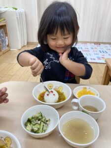 ハロウィン特別メニューの給食の様子をお伝えしたいと思います!