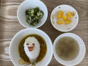 お給食の先生が、こんなに可愛い『おばけ👻』のカレーライスを作ってくれました💗