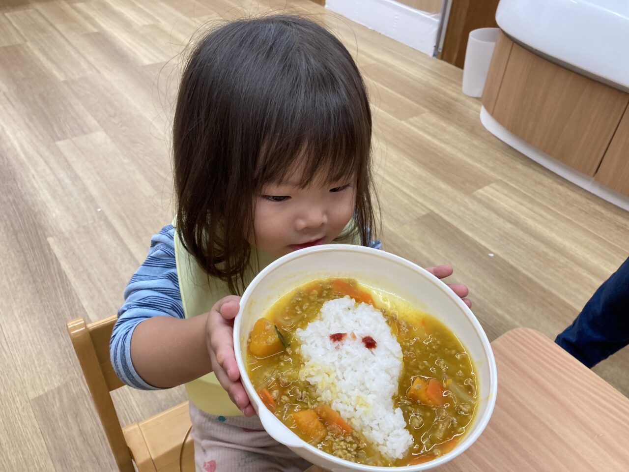 給食では、かわいいおばけの形をしたごはんがのった“おばけカレー”が登場👻🎃