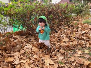 散歩道や公園で、色とりどりの葉っぱに出会い、この時期なら出歩の自然を感じながら、ガサガサ、バリバリ…🍂耳で、感触で、色んな感覚を使って楽しむ様子が見られます👂✋💕