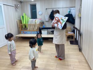 クラスに戻って絵本を読みながら、上手に先生の真似っこをしています🥰