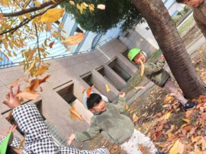 落ち葉といったら、落ち葉を集めて空に投げて、、、、葉っぱシャワー🍂