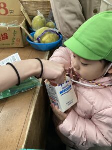 お金を渡してお釣りを牛乳パックのおカバンに入れてもらいました!!