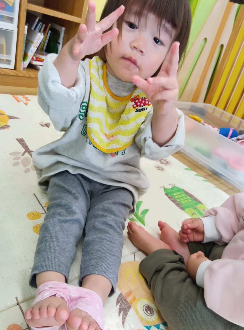 また、言葉や身振りで気持ちを伝えようとする姿も多くなり、お友だちに関わろうとする場面も見られるようになりました‼️
