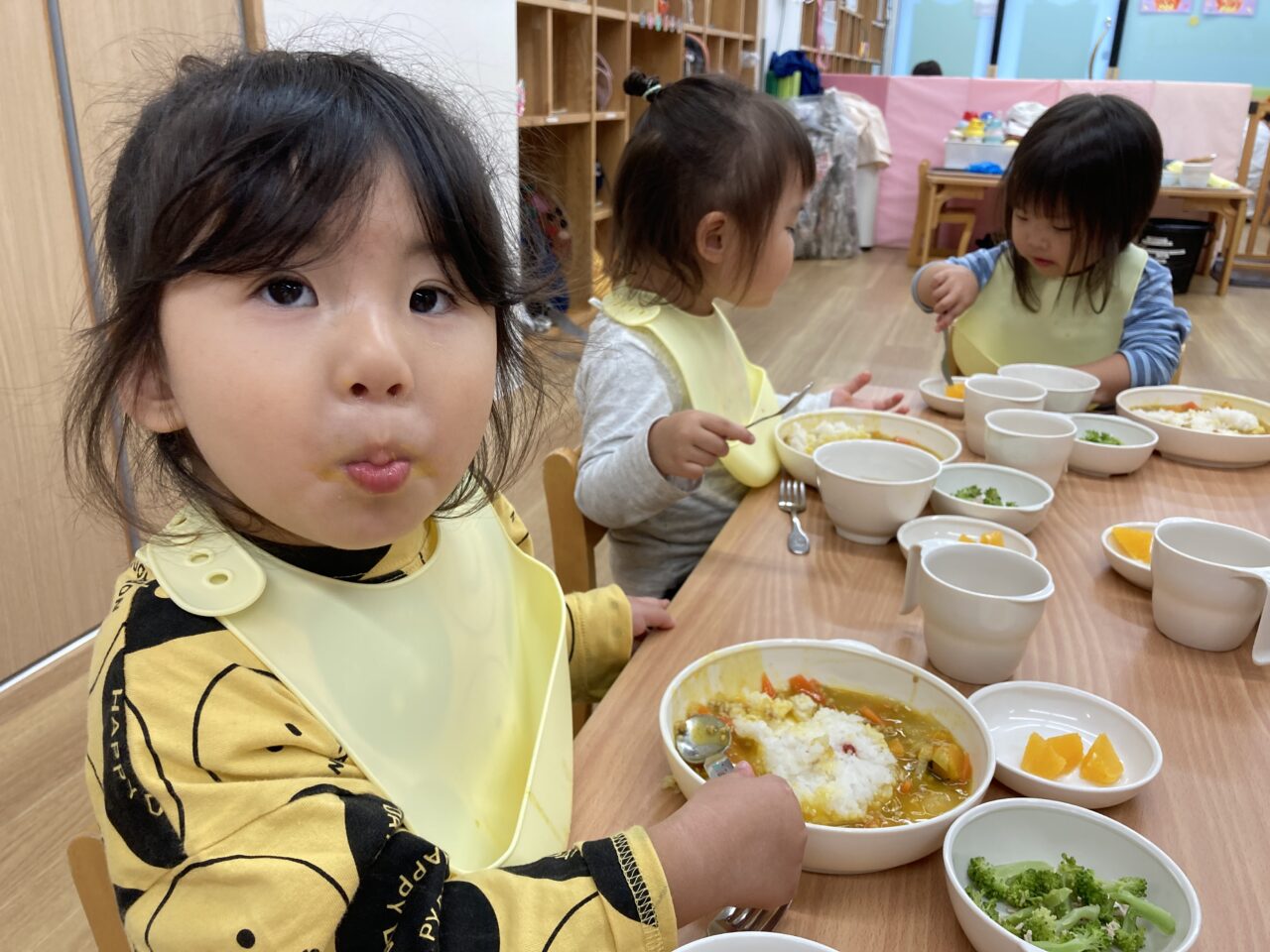 入園当初は不安そうな表情や涙が見られることもありましたが、少しずつ園の生活に慣れ、保育者の顔を見ると安心した表情を見せてくれるようになりました✨