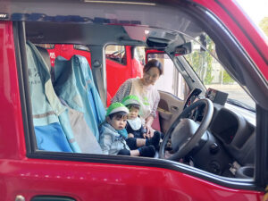 大きな🚒消防車に乗せてもらって、大満足!!