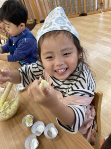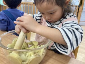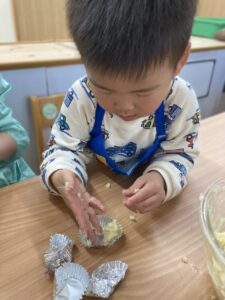 次に、さつま芋🍠をまるめて形を作り、銀カップに