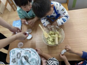 次に、さつま芋🍠をまるめて形を作り、銀カップに