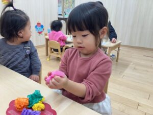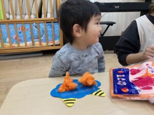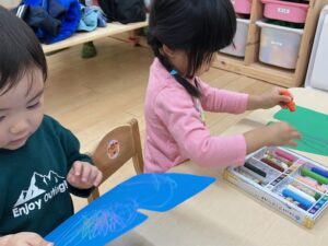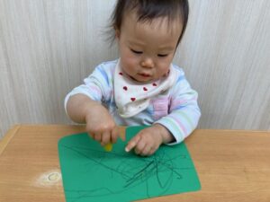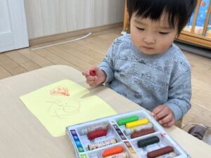 いちご組(1歳児)さん🍓も鬼のパンツに色塗りをしています🖍