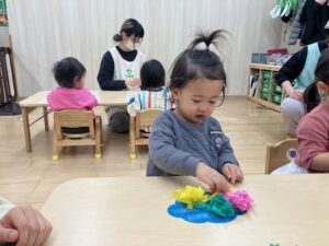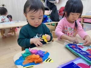 糊をつけるのもとっても上手なぶどう組(2歳児)さん🍇