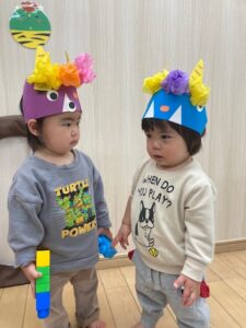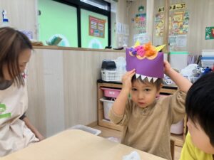 ぶどう組(2歳児)さん🍇も鬼の被り物を作るようです👹