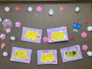 しろくまさんのパンツは絵本を元にした作品で、綿棒を使い素敵なパンツを作ってくれました✨