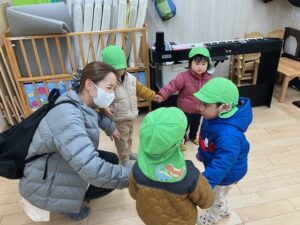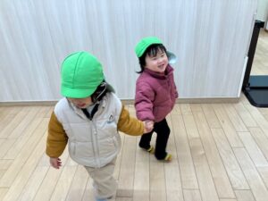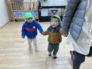 いちご組(1歳児)さんも出発する前に「今日は誰と手をつなぐ~?」と約束ができるようになりました🤭