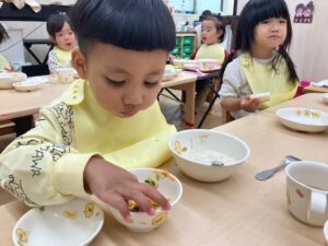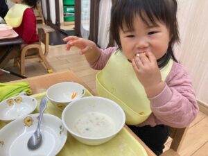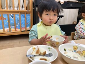 この日は温かいシチューとパンです💓🥰みんなおいしそうにモグモグしていました😋