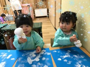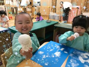 ちょうどいちご組さんの製作テーマが〈雪だるま〉でした