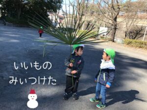 大きな葉っぱを見つけたね