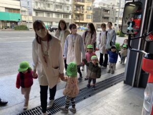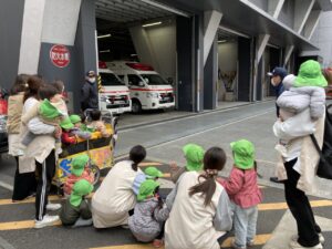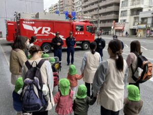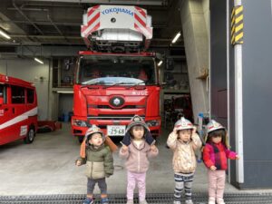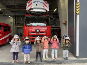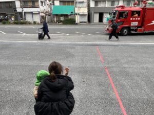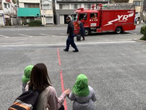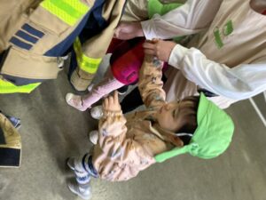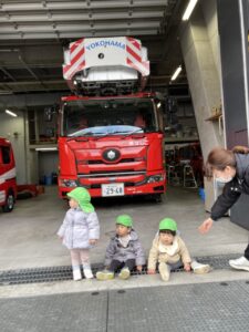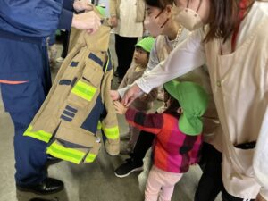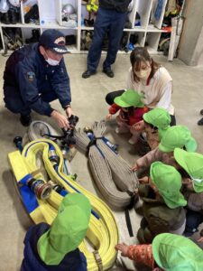 消防ホースを間近に見させてもらい、つんつん👉させてくれました✨