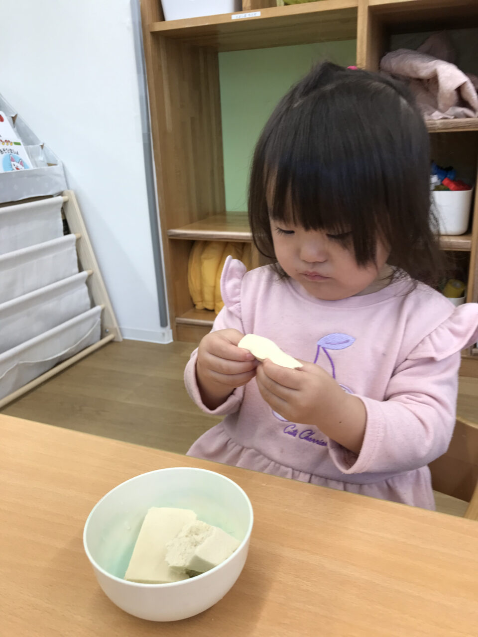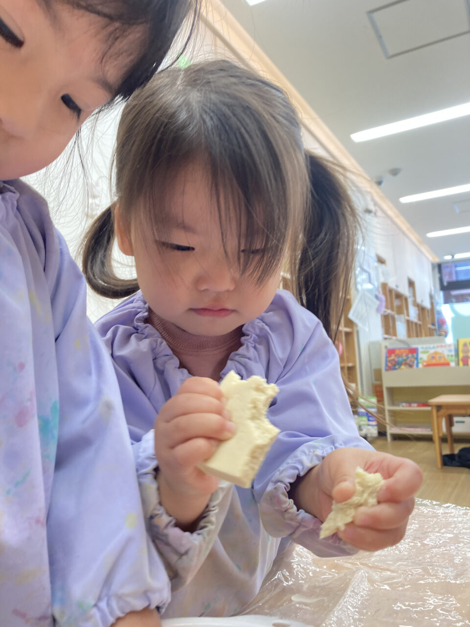 感触遊びで高野豆腐を使った時の様子をご紹介💡