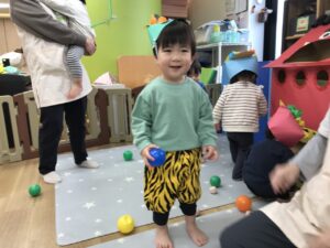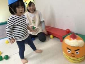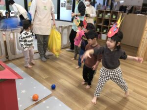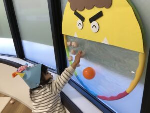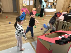 それぞれの鬼さんに豆(ボール)を当てます🤾🏻🤾🏻‍♀️🤾🏻🤾🏻‍♀️