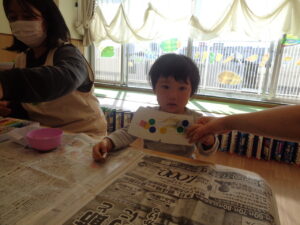 シールを貼ったり模様を描いたりそれぞれ思い思いの素敵なパンツが完成しました🤗