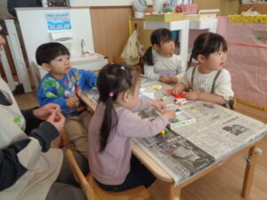 その後は鬼の「とらのパンツ」イメージした製作にも取り組みました。