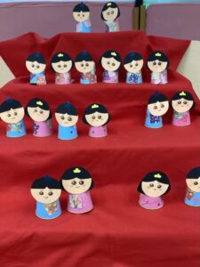 みんなでおひな様やおだいり様を作ってひな壇に飾りました。