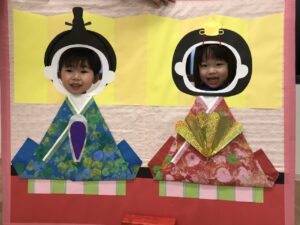 じゃあ皆も顔抜きパネルでお雛様とお内裏様になってみよう!!