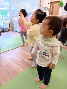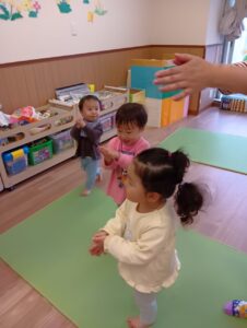 音楽に合わせて体を揺らしたり、手を叩いたり👏