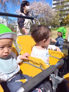 バギーに乗って桜咲く公園に到着🌸