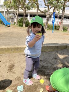 おままごと遊びも昨年のお皿に入れて「どーぞ!」ではなく