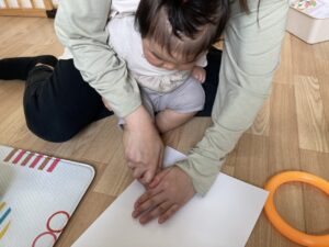 0歳児のれもん組🍋さん、初めての製作に挑戦✨な場面をお届けしたいと思います👀💕