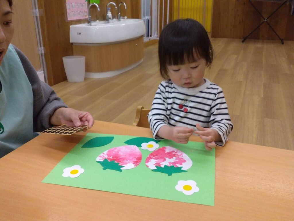 いちごの制作をしている時の様子です🍓