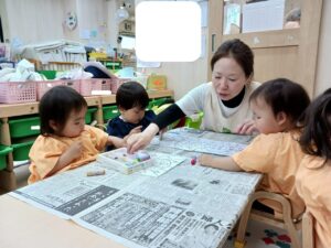 ここに貼るんだよ~と声をかけるとしっかり台紙に貼れていました😊👏