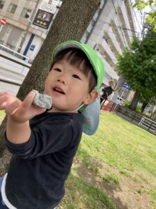 公園で石を見つけたり、アリを見つけたり大忙し😁