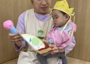 「手をたたいて、大きな声でおめでとうって言ってね。せーの!ぱちぱちぱち…」
