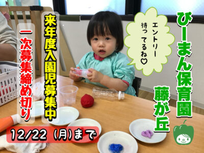 横浜市青葉区のぴーまん保育園 藤が丘 です🐹🌈 ぴーまん保育園では2026年度の入園児募集を開始しました