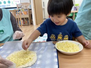 みんなで一生懸命育てた野菜で作ったピザ🍕🍕🍕