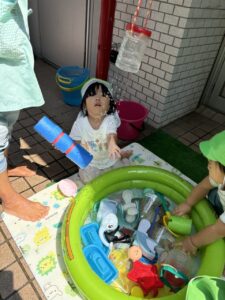 水遊びも夏の間だけとなりますが、今回は最近の水遊びの様子をお伝えしたいと思います!
