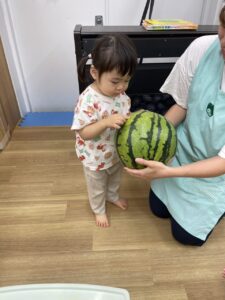 おおきなスイカに興味深々な子どもたち🎵