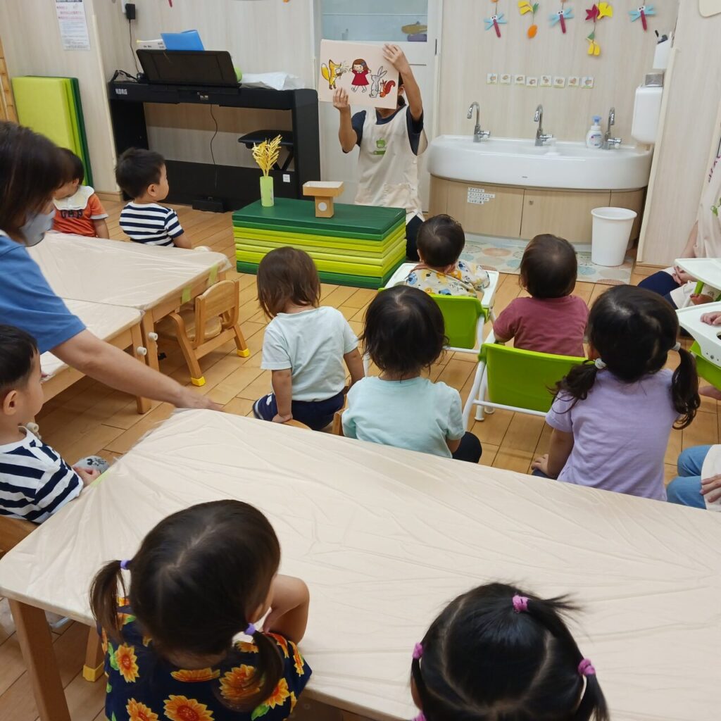 集会では、十五夜の紙芝居を読んだ後、白玉粉での白玉作りにチャレンジしました!!