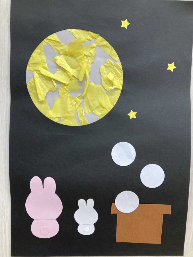 集会前にはクラス毎にお月様の製作をしましたよ😊