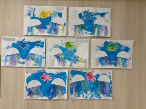 ビリビリしたテープはくらげさん、手形はお魚さんになりました🌊🪼🐟