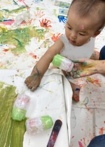全身で楽しむことで絵具の触感から、
