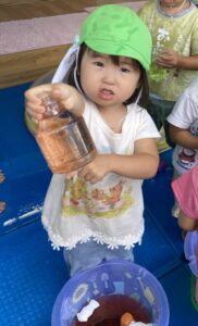 違う色を混ぜると変化していく様子も楽しみました🥰