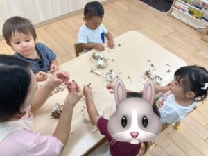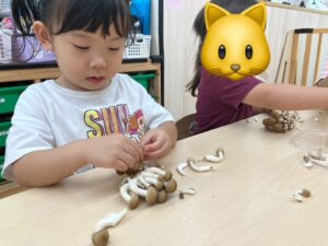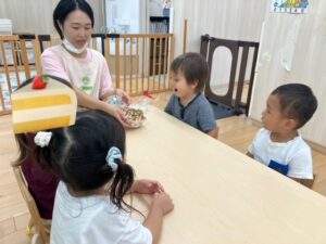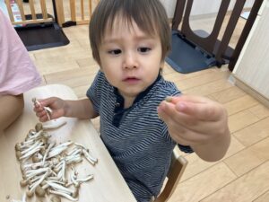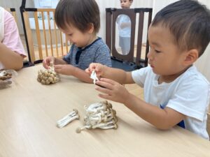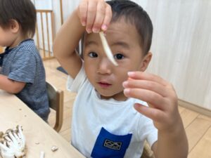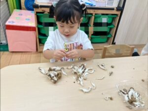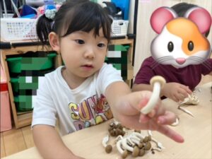 ぶどう組(2歳児)さん🍇の食育で利用したのはしめじ🍄